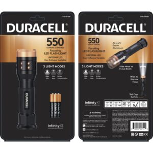 Full Description Duracell Aluminum Focusing LED Flashlight – AAA – Aircraft Aluminum – Black General Information Manufacturer:Duracell Inc.Manufacturer Part Number:7142DF550Manufacturer