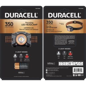 Full Description Duracell Focusing Beam LED Headlamp – AAA – Black General Information Manufacturer:Duracell Inc.Manufacturer Part Number:7180DH350Manufacturer Website Address:http://www.duracell.comBrand Name:DuracellProduct