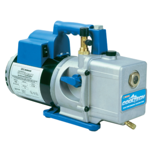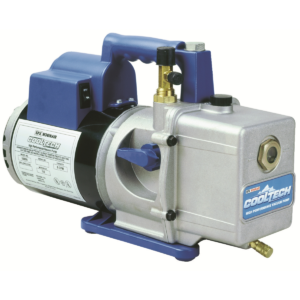 Features and Benefits: VacuMasterr Single Stage Pump 3 CFM free air displacement 110-volt, single-stage design 1/4″” flare & 1/2″” ACME