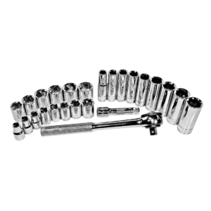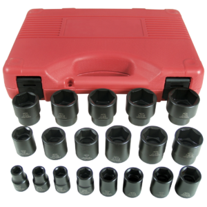 Features and Benefits: Heat-treated, chrome-moly steel Laser engraved for quick identification Packaged in blow-molded case Set includes short sockets sized