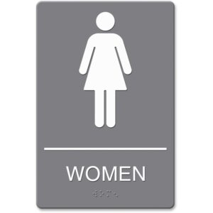 Full Description Headline Signs ADA WOMEN Restroom Sign – 1 Each – Women Print/Message – 6″ Width – Adhesive, Braille