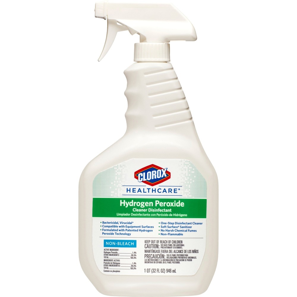 Clorox Healthcare Hydrogen Peroxide Cleaner Disinfectant kills microorganisms quickly on a broad range of surfaces. It is a ready-to-use, one-step, noncorrosive disinfectant cleaner that cleans and disinfects faster than the competition. It has 30 to 60 second, hard-surface disinfecting times on most bacteria and viruses. On soft surfaces like curtains, chairs and couches, it kills bacteria in just 30 seconds. This hydrogen peroxide cleaner meets EPA criteria for use against SARS-CoV-2, the virus that causes COVID-19. It is safe to use on several types of fabrics such as polyester and cotton, and it will not harm canvas, nylon or polypropylene. It is EPA-registered to kill pathogens on both hard and soft surfaces. Conscious of patient and staff comfort, this cleaner is formulated with no harsh chemical odors, fumes or added fragrances. It is intended for use in commercial settings.