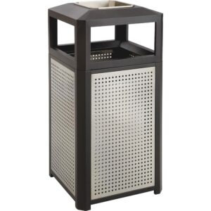 Ashtray waste receptacle offers easy disposal of cigarettes and trash at one location. Slim, efficient design is ideal for smaller traffic areas. Removable lid allows easy disposal of ashtray contents and full access to the trash can. Waste receptacle includes galvanized liner beneath and is made from fire-safe stainless steel and aluminum construction. Receptacle is recommended for indoor use only.