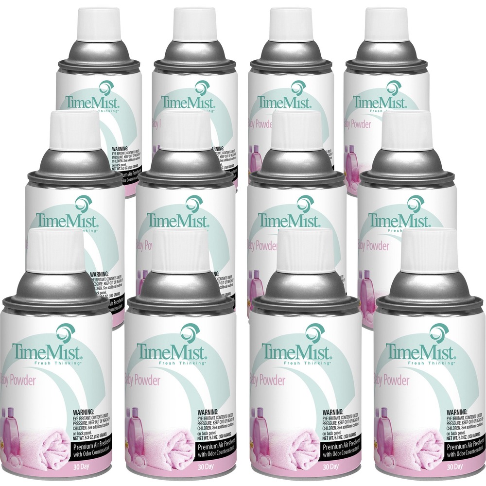 TimeMist Metered 30-Day Baby Powder Scent Refill – Spray – 6000 ft³ – 5.3 fl oz (0.2 quart) – Baby Powder – 30 Day – 12 / Carton – Long Lasting, Odor Neutralizer