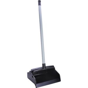 Dustpan and broom allow you to quickly remove debris from the floor without bending. Ergonomic handle minimizes straining of your hands and wrists. Broom conveniently attaches to the dustpan for easy storage and retrieval. Swivel dustpan opens when the base hits the floor, and collapses without spilling its contents.